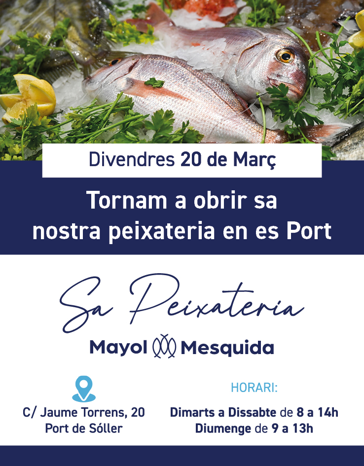 Desde el viernes 20 de Marzo 2026 tenemos abierta nuestra pescadería en el Puerto de Sóller.
